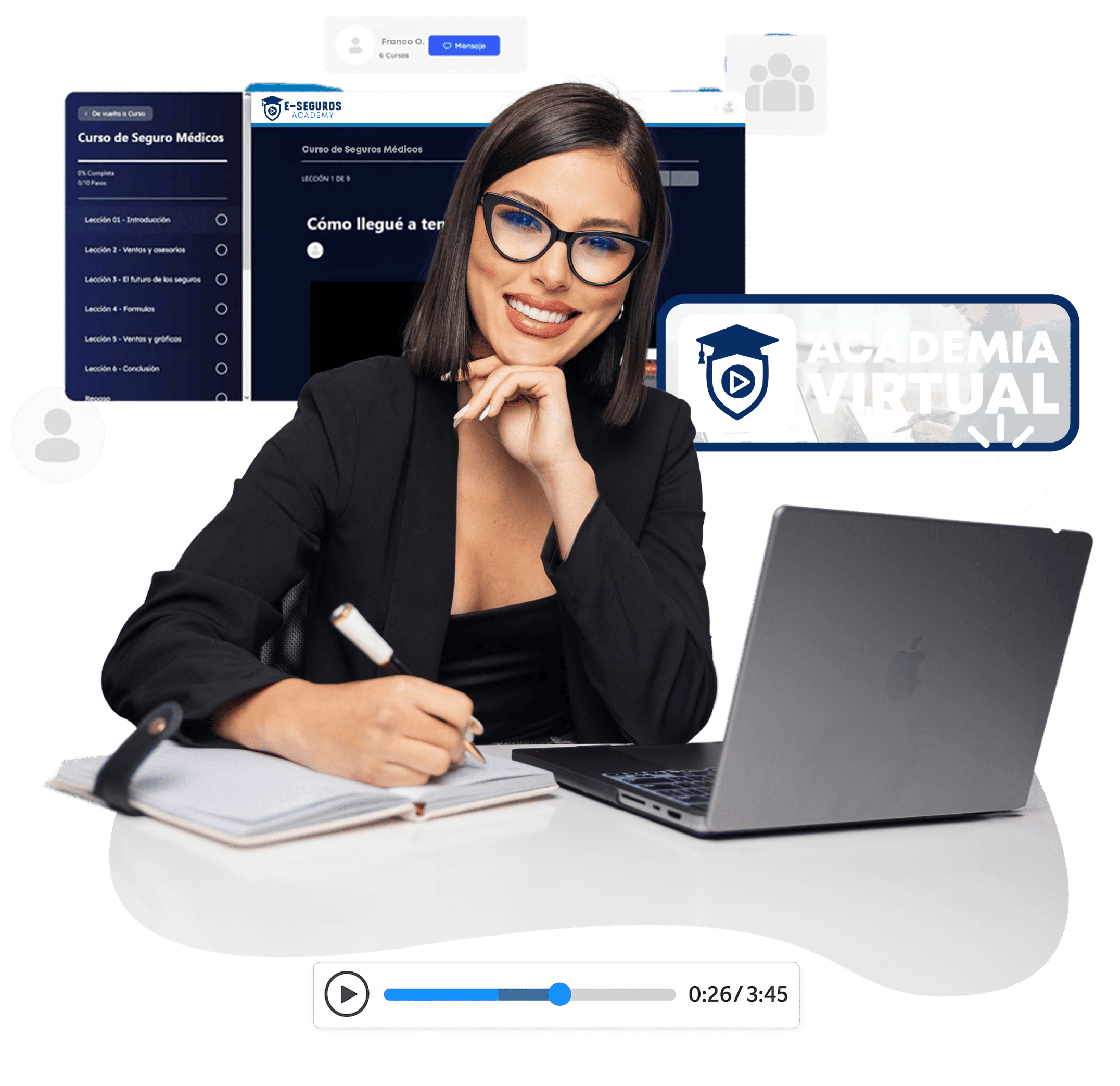 E-seguros Academy es un espacio dedicado exclusivamente a potenciar tu perfil a través de la formación continua. Te brindamos las herramientas para dominar la normativa vigente, integrar la innovación tecnológica en tu día a día y perfeccionar tus estrategias de venta. Transforma el aprendizaje en autoridad y ofrece una asesoría de nivel superior con el respaldo de los mejores.